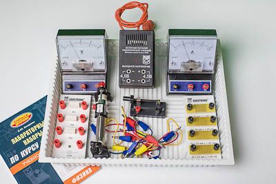 Состав комплекта: источник питания постоянного и переменного тока (4,5 В) – 1 шт., вольтметр (0–6 В, цена деления 0,2 В; 0–3 В, цена деления 0,1 В) – 1 шт., амперметр (0–3 А, цена деления 0,1 А; 0–0,6 А, цена деления 0,02 А) – 1 шт., резистор с обозначением R1, сопротивление (4,7±0,5) Ом - 1 шт., резистор с обозначением R2, сопротивление (5,7±0,6) Ом - 1 шт., резистор с обозначением R3, сопротивление (8,2±0,8) Ом - 1 шт., набор проволочных резисторов plS (резисторы обеспечивают проведение исследования зависимости сопротивления от длины, площади поперечного сечения и удельного сопротивления проводника) - 1 шт., лампочка с номинальным напряжением 4,5 В, сила тока 0,5 А - 1 шт., переменный резистор (реостат), сопротивление 10 Ом - 1 шт., соединительные провода - 10 шт., ключ - 1 шт., лоток пластиковый размером 340*270*55 мм? - 1 шт., учебное пособие «Лабораторные наборы по курсу физики» (автор Е.Ю. Косарева – 68 страниц – печать офсетная, обложка полноцветная) – 1 шт., руководство по эксплуатации - 1 шт.