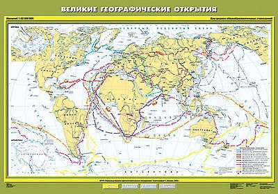 Учебн. карта "Великие географические открытия" 100х140 Добавить к запросу Узнать стоимость Добавить к запросу Узнать стоимость Описание Описание Технические характеристики:Масштаб 1:25000000, формат 140*100 см.Цветными стрелками показаны маршруты основных путешествий первопроходцев.Односторонняя печать, двустороннее ламинирование, лицевая сторона покрыта матовым ламинатом.