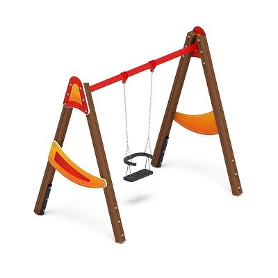 Сиденье и спинка подвешивается к штанге качели цепями через наконечники. Цепь – коротко-звеньевая, некалиброванного класса, прочность металла Т(8), диаметр сечения звена цепи 6мм. Наконечник выполнен из профиля 30х30мм, втулки и подшипника. Наконечник окрашен в красный цвет. Цепь защищена термо-усадочной трубкой на всю длину.