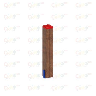 выполнен из клеёного бруса 100х100 мм высота 500 мм, окрашен в светло коричневый цвет. Сверхустолб закрыт пластиковой заглушкой