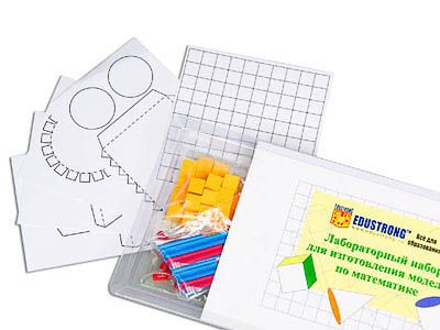 Комплектность: стержни длиной 8 см – 4 шт., стержни длиной 5 см – 12 шт., стержни длиной 4 см – 4 шт., стержни длиной 3 см – 6 шт., уголки – 8 шт., нити длиной 10, 20 и 100 см – по 1 шт., кубики с ребром 1 см – 30 шт., палетка – 1 шт., развертки геометрических тел – 5 шт., линейка с трафаретами геометрических фигур – 1 шт., руководство по эксплуатации – 1 шт.