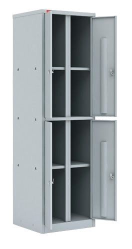 Шкаф разборный металлический двухсекционный с 4-мя отделениями. В каждой секции: одна полка. Двери с индивидуальным врезным замком. Шкаф предназначен для хранения архивов, офисной и бухгалтерской документации. Полимерное порошковое покрытие светло-серого цвета (RAL 7035). Возможна установка регулируемых опор (в комплект не входят).