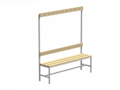 Металлические скамейки часто устанавливаются в раздевалках спортивных залов, школ и других общественных учреждений. Для изготовления каркаса скамеек используется гнутая профильная труба. Это позволяет уменьшить итоговый вес изделия, что значительно облегчает процесс транспортировки и установки. На трубу каркаса посредством напыления наносится высококачественная полимерная краска. Она обладает рядом полезных свойств, в частности, устойчивостью к механическому и химическому воздействию. Непосредственно скамья изготавливается из сосны.