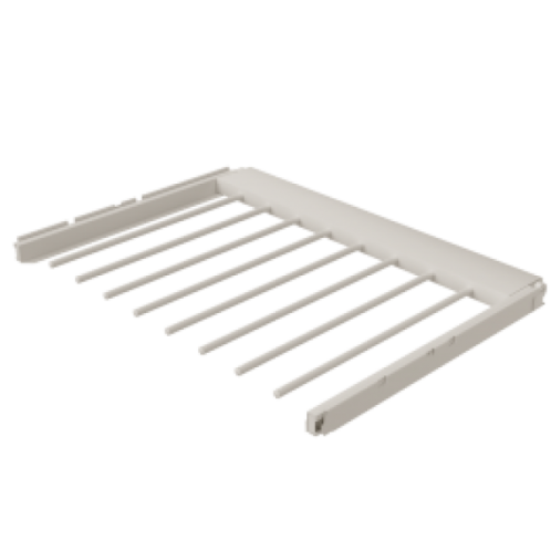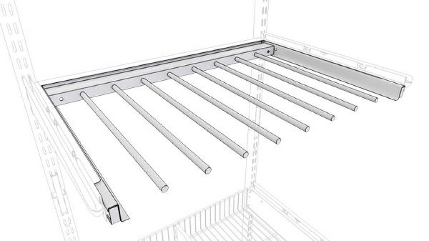 Выдвижная брючница обеспечивает лёгкий и быстрый доступ к брюкам. Снабжена резиновыми кольцами, предотвращающими соскальзывание брюк. Брючница также может использоваться для хранения полотенец. Легкая установка и регулировка. Поставляются в собранном виде в индивидуальной упаковке.