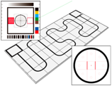Также комплект содержит 42 магнитных листа (арт. 8989541 размером 300х300 мм каждый из которых представляет собой один из элементов траектории-пазла. Эти листы крепятся магнитным способом на металлизированную поверхность полей, т.о. позволяя создавать различные варианты траекторий для проведения занятий и соревнований роботов. Толщина линии траектории 25 мм. Примерный вес - 30 кг.