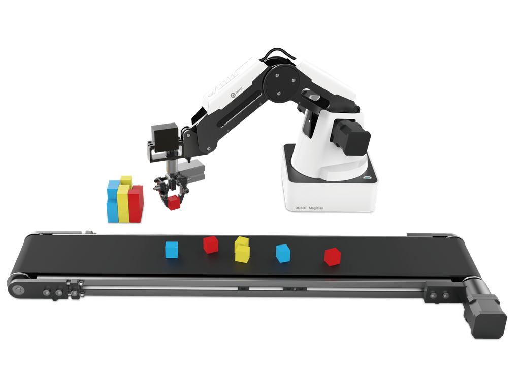 Базовый комплект малой автоматизации служит основой для изучения средств и способов малой автоматизации в промышленности. Комплект основан на старшей линейке манипуляторов DOBOT Magician и включает в себя набор конвейерной ленты с датчиками, а также набор элементов управления и сенсоров для платформы Arduino. Четырёхосевой учебный робот-манипулятор с модульными сменными насадками DOBOT Magician является центром управления автоматизированной системой