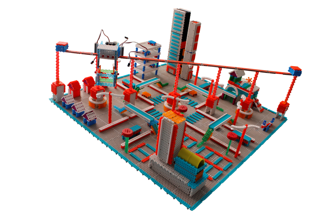 Набор предназначен для совместной тематической проектной деятельности. Возможность сборки рабочего поля в форме квадрата со стороной 75 см, тематических объектов по замыслу детей. Комплект состоит из не менее чем 915 деталей, в т.ч. прошитая материнская плата 2 шт., моторы постоянного тока 2 шт. Конструктивные элементы должны быть выполнены из износостойкой ABC пластмассы и представлять собой блоки с защелками с не менее, чем шести сторон , а также рамки, втулки, шестеренки, колеса, рамки. Совместим с любыми наборами серии HUNA-MRT