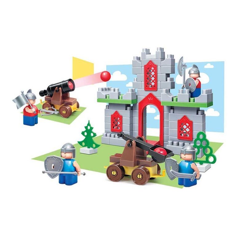 Способствует развитию воображения, пространственного мышления, навыков усидчивости и познавательского интереса. Детали конструктора безопасны, подходят как для самостоятельных игр, так и для занятий в коллективе. Комплектация наборов: кубики разного размера и цветов, декоративные элементы (деревья, крыши, окна, вотора, флаги), фигурки рыцарей, оружие и щиты, фигурки лошадей, сборные пушки и катапульты, ядра для стрельбы, голова дракона.