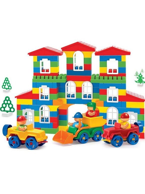Классический блочный конструктор, изготовленный из безопасного пластика и пищевых красителей. Предназначен для детей от 3х лет. Развивает мелкую моторику, пространственное мышление и фантазию. В комплекте: кубики различного размера, фигурки человечков, инструменты, сборные машинки, элементы декора (заборы, деревья, окна, двери, крыши).
