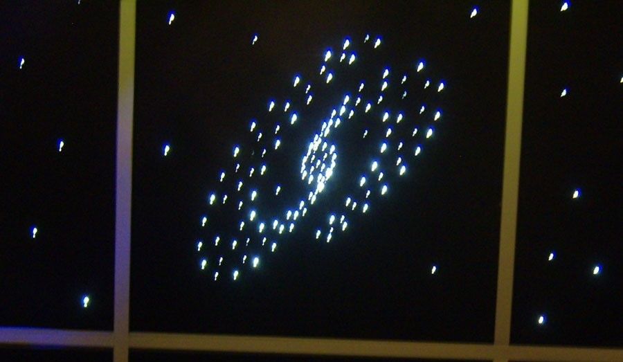 На плитке выложена Спиралевидная Галактика, «лопасти» которые вращаются вокруг центра на фоне мерцающих звезд. В эффекте задействовано не менее светящихся 1000 оптических волокон. Синхронизирующий светогенератор установлен на плитке.