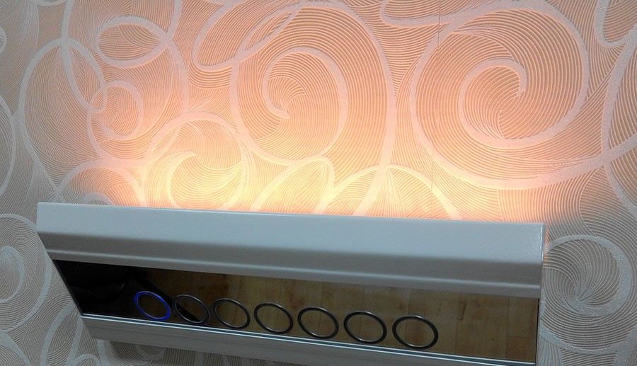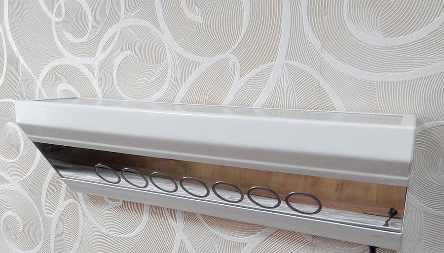 Корпус светильника имеет форму трапеции. Лицевая панель, на которой расположены теплочувствительные поля - зеркальная.