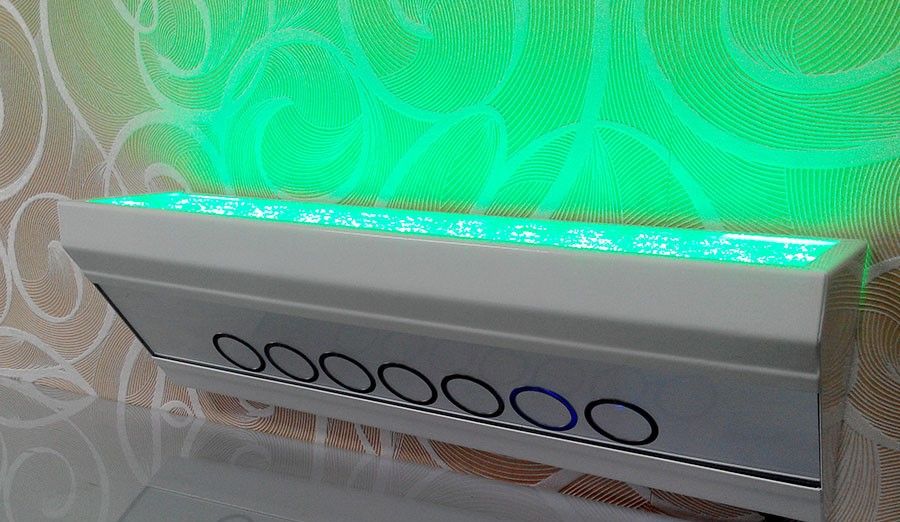 Выбор режимов подсветки осуществляется простым касанием одного из семи теплочувствительных полей на лицевой панели светильника. Выбранный касанием режим подсвечивается.
