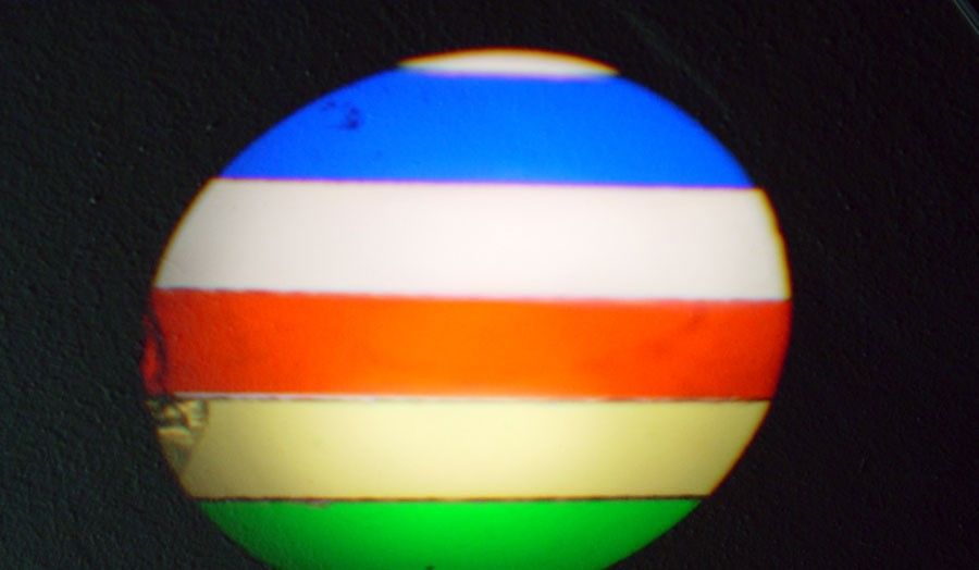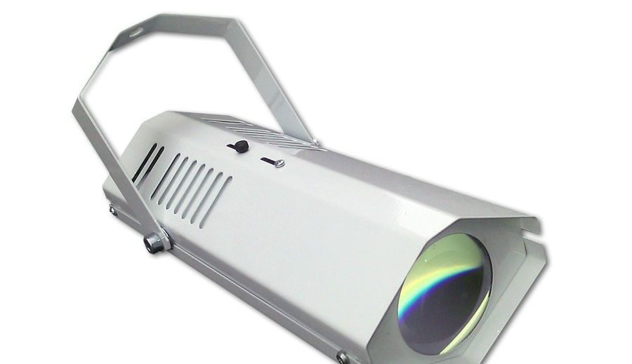 Миниатюрная световая пушка белого или 5-ти цветного луча - профессиональный источник света для зеркального шара. Благодаря съемной насадке с цветными полосками белый зеркальный шар и зайчики от него становятся разноцветными, меняя цвет при вращении шара. Может использоваться как проектор несложных трафаретов.
