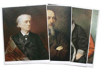 Пособие представляет собой набор репродукций портретов русских писателей XIX века, выполненных русскими художниками, изготовленных на плотной небликующей бумаге. В состав набора включены портреты А.Н. Островского, Н.А. Некрасова, В.А. Жуковского, А.И. Герцена, И.С. Тургенева, А.С. Пушкина, А.П. Чехова, И.А. Крылова, Л.Н. Толстого, М.Е. Салтыков-Щедрина, А.С. Грибоедова, Ф.М. Достоевского, Н.В. Гоголя, А.А. Фета, Ф.И. Тютчева, М.Ю. Лермонтова.?