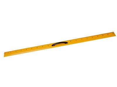 Линейка изготовлена из пластика, снабжена удобной ручкой. На изделие нанесена шкала с ценой деления 1 см и оцифровкой через 5 см.