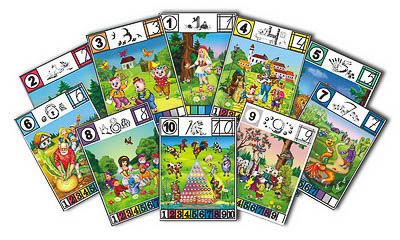 Демонстрационное пособие "Сказочный счёт" состоит из 10 таблиц (картон, 430*580) и методических указаний к ним.